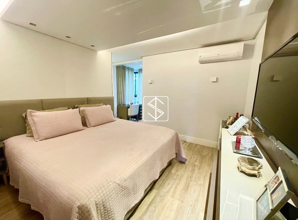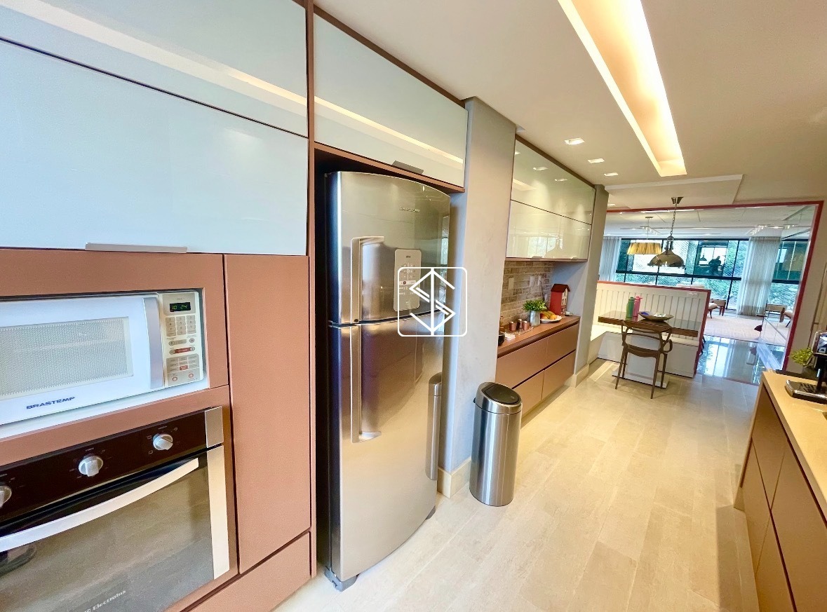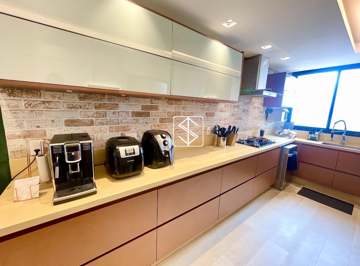 A cozinha e os acabamentos foram executados com materiais de qualidade, incluindo bancadas em Silestone. O apartamento passou por reforma em 2018 e está equipado com ar-condicionado inverter, projeto de iluminação, som embutido, luminárias e cortinas instaladas, oferecendo praticidade e conforto desde o primeiro dia. Todos os banheiros possuem ventilação natural, um diferencial importante em imóveis desse padrão.