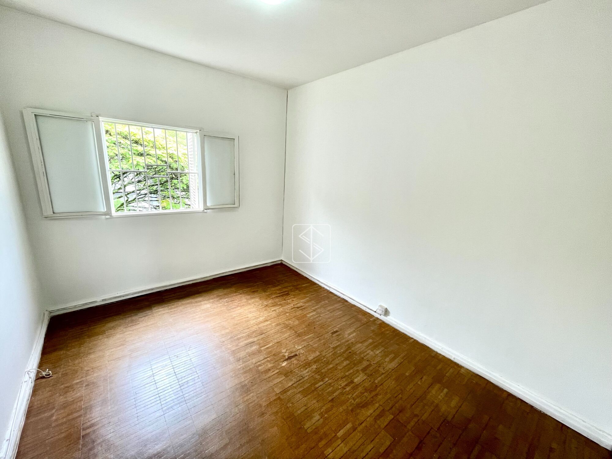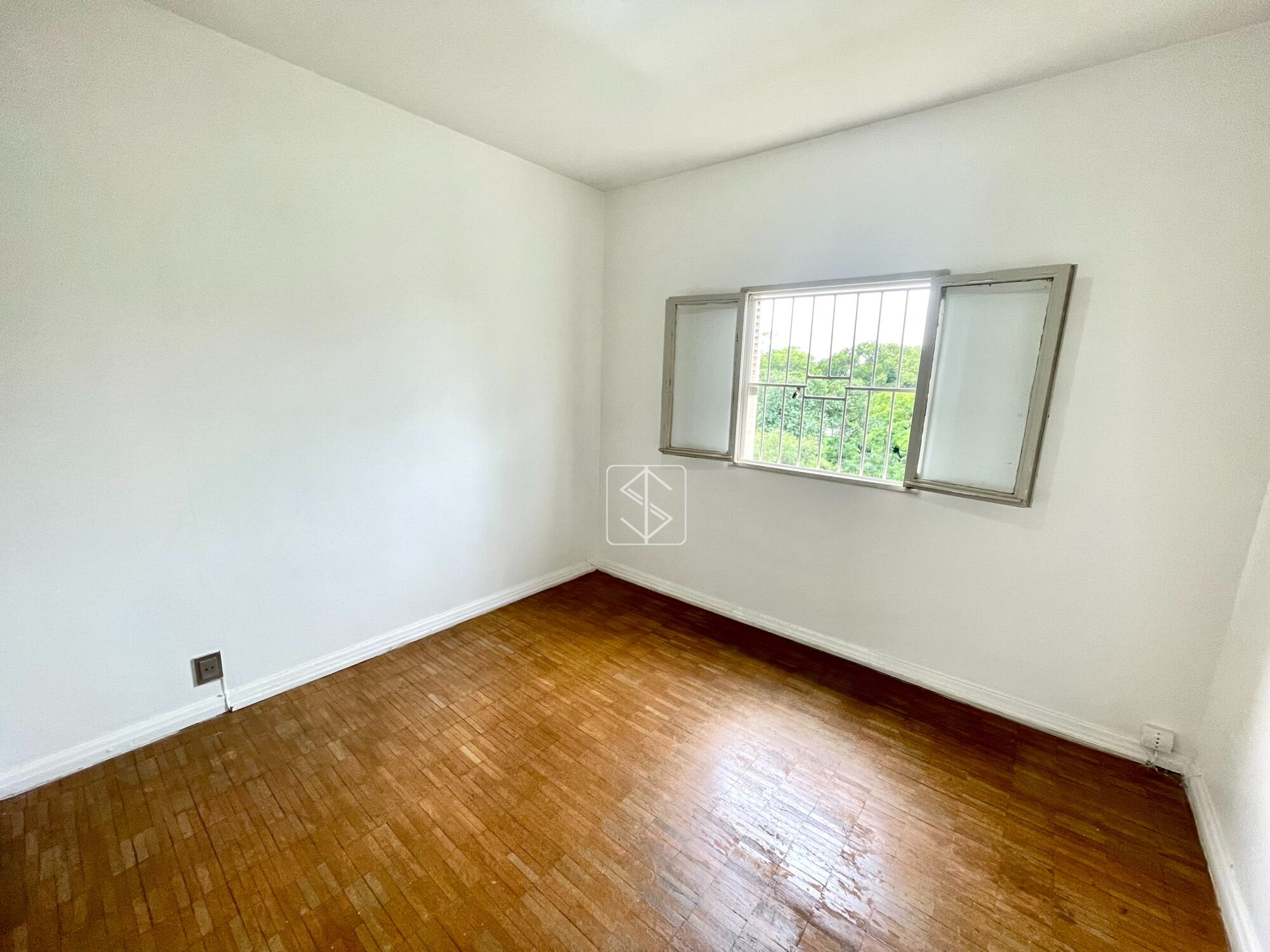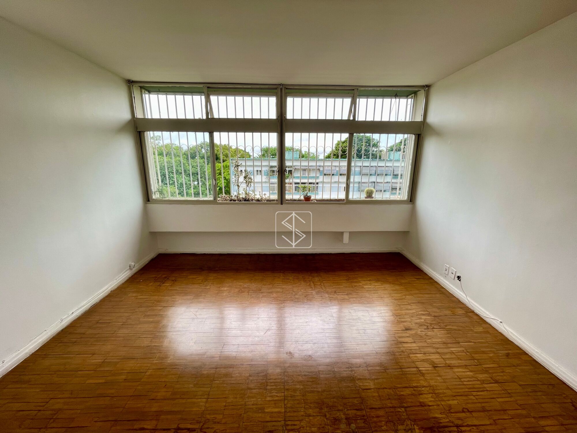 Sala ampla, com excelente iluminação natural, grande janela e vista com jardineira